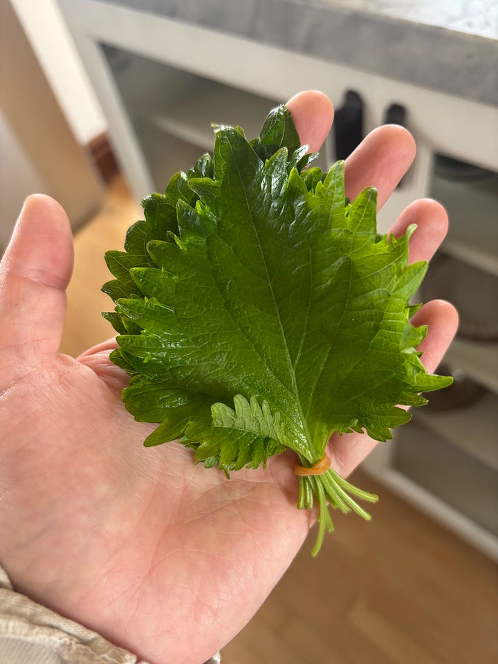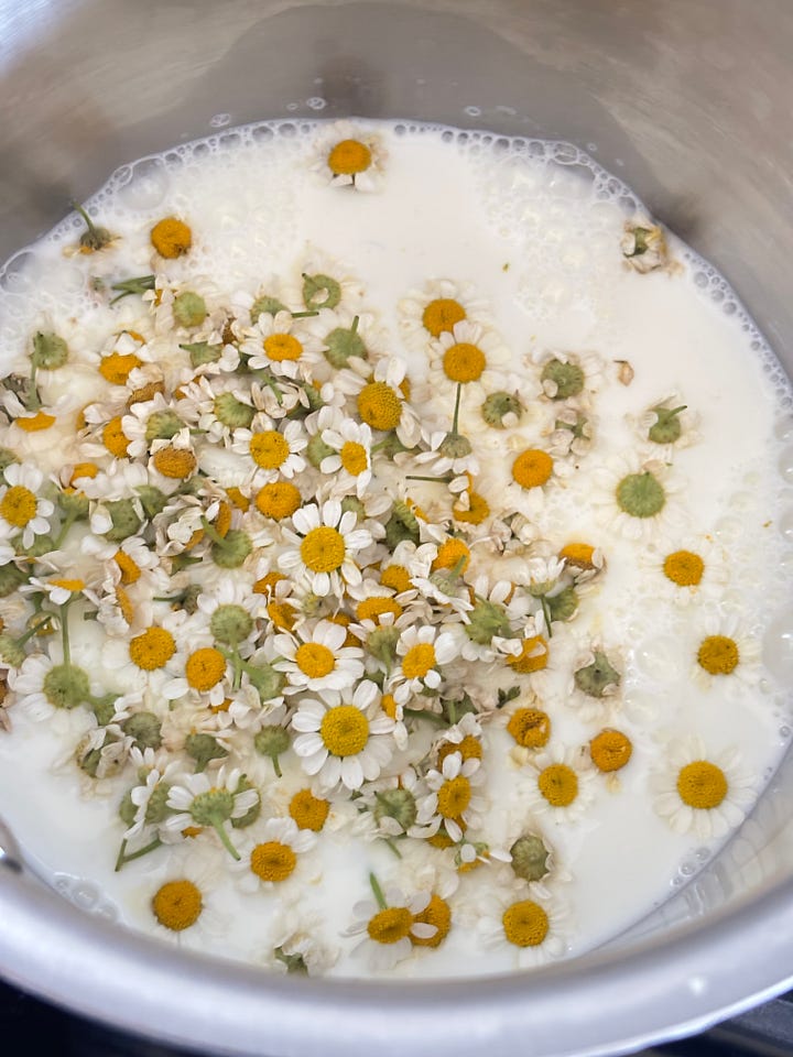 I love the rubber band on these shiso leaves. Chamomile in milk for some pastry cream. My mom said it was “medicinal” tasting which I don’t totally disagree with but I think it tasted good.