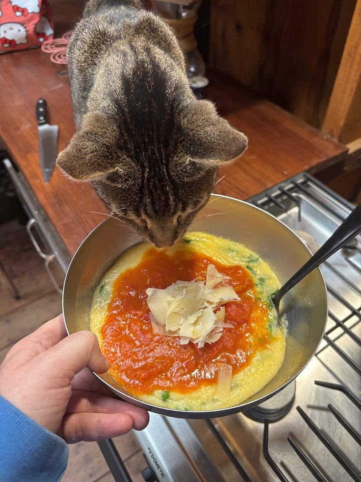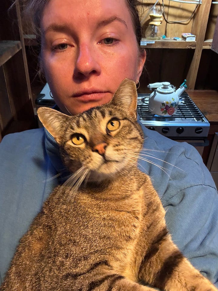 When I got to the campsite in Gualala a skinny cat immediately shouldered up to me and didn’t really leave my side for the 3 days I stayed. He was desperate for food and I identified myself as a target for his begging when I gave him a little piece of Parmesan from my dinner. I would have to lock myself in my cabin because he was so insistent on getting at my food. It was pretty heartbreaking leaving him, but I hope he makes some other lady who’s spiraling about her career path as happy as he made me.