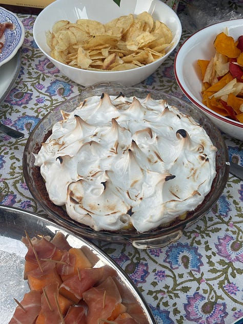 Dived a bit further into David Lebovitz. I realized that someone cut out 10 pages from the library book I have of Read for Dessert which is making me more impatient for the re-issue coming in September. From this I made the key lime pie with marshmallow top which was pretty good. I wish I had refrigerated more before serving because it was pretty gloopy. I also wasn’t CRAZY about the marshmallow meringue on top. My mom and I were watching Baking With Julia on PBS from 1996 that was released in unison with the cookbook and we got inspired to make the puff pastry featured on the show.